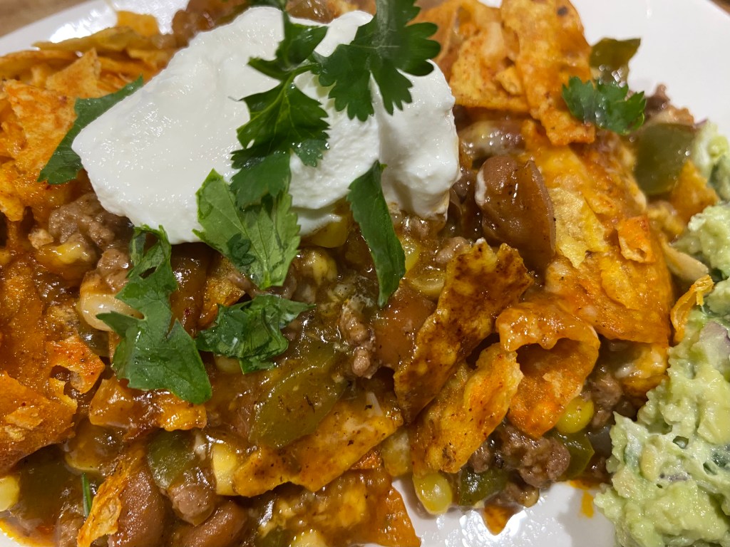 Note: You can add rice to this casserole if you have some on hand and if you want to change the top up some mix up some mexican corn bread batter and pour that over the top.