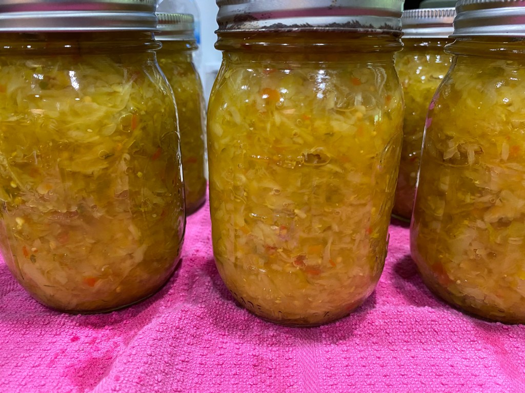 We enjoy this chow-chow with pinto beans, hotdogs and other meals.