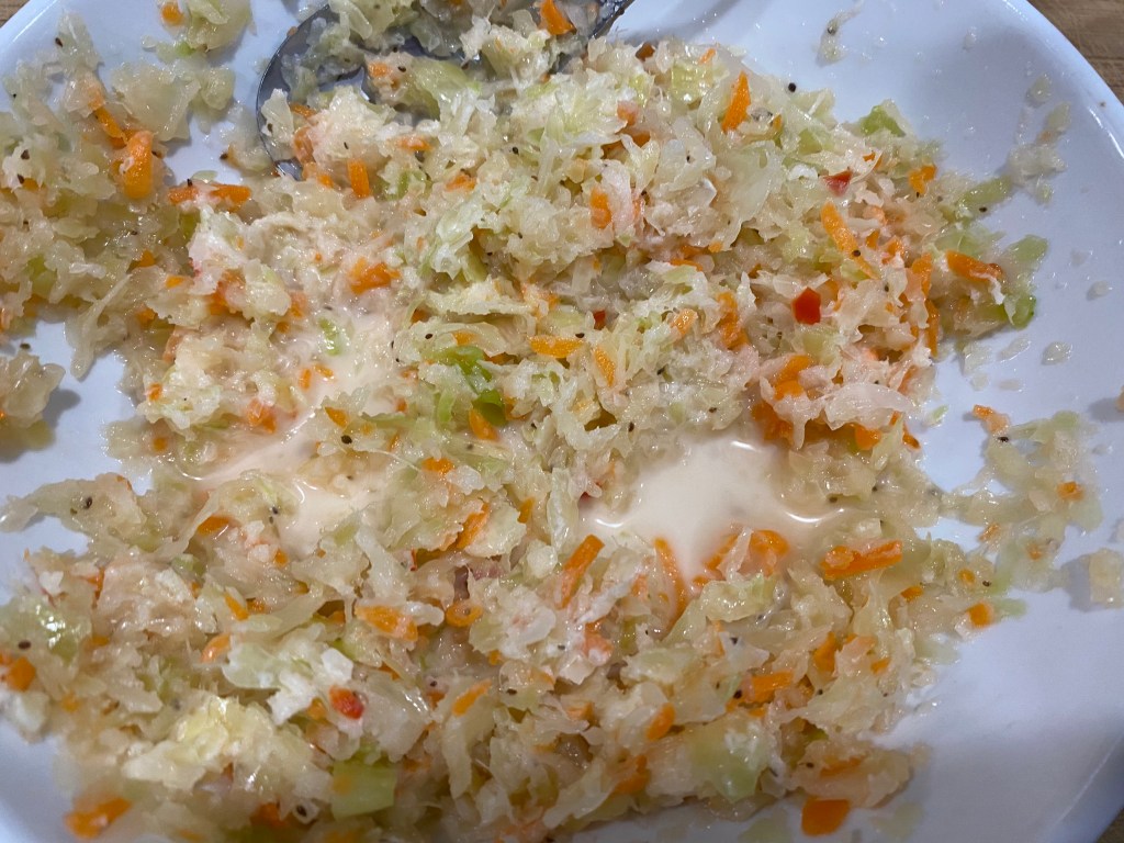 Note: If you do not like onions and bell peppers in your slaw then you can leave it out.