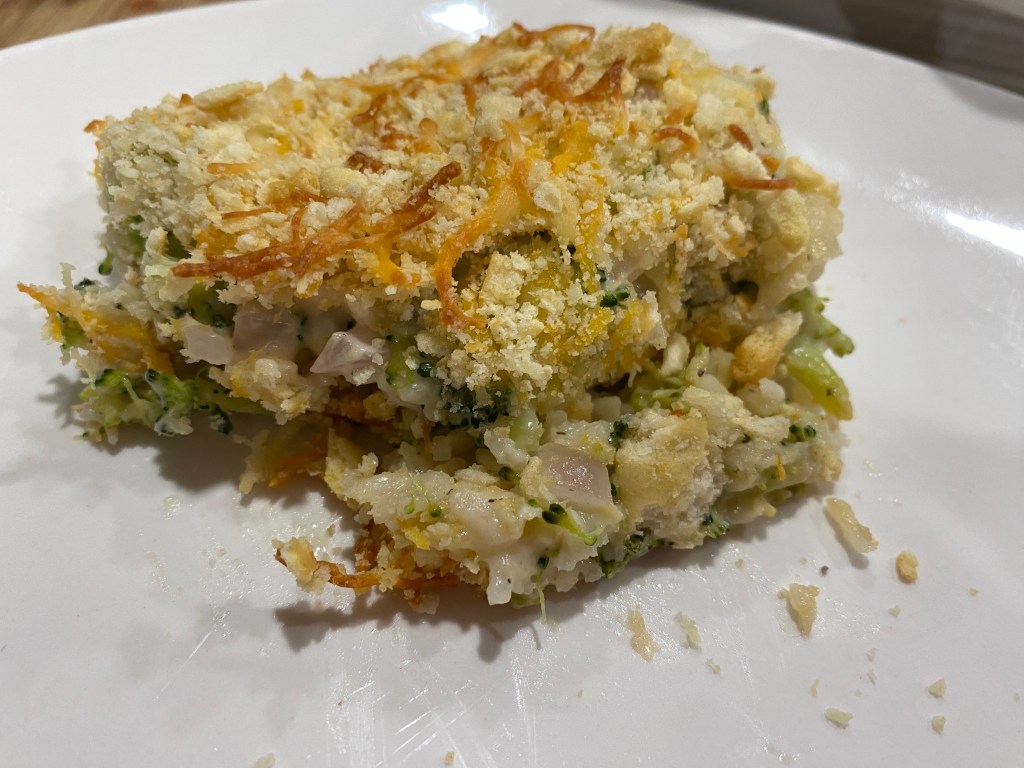 Bake the casserole for 25 -30 minutes or until it is bubbly and golden brown on the top. Enjoy!