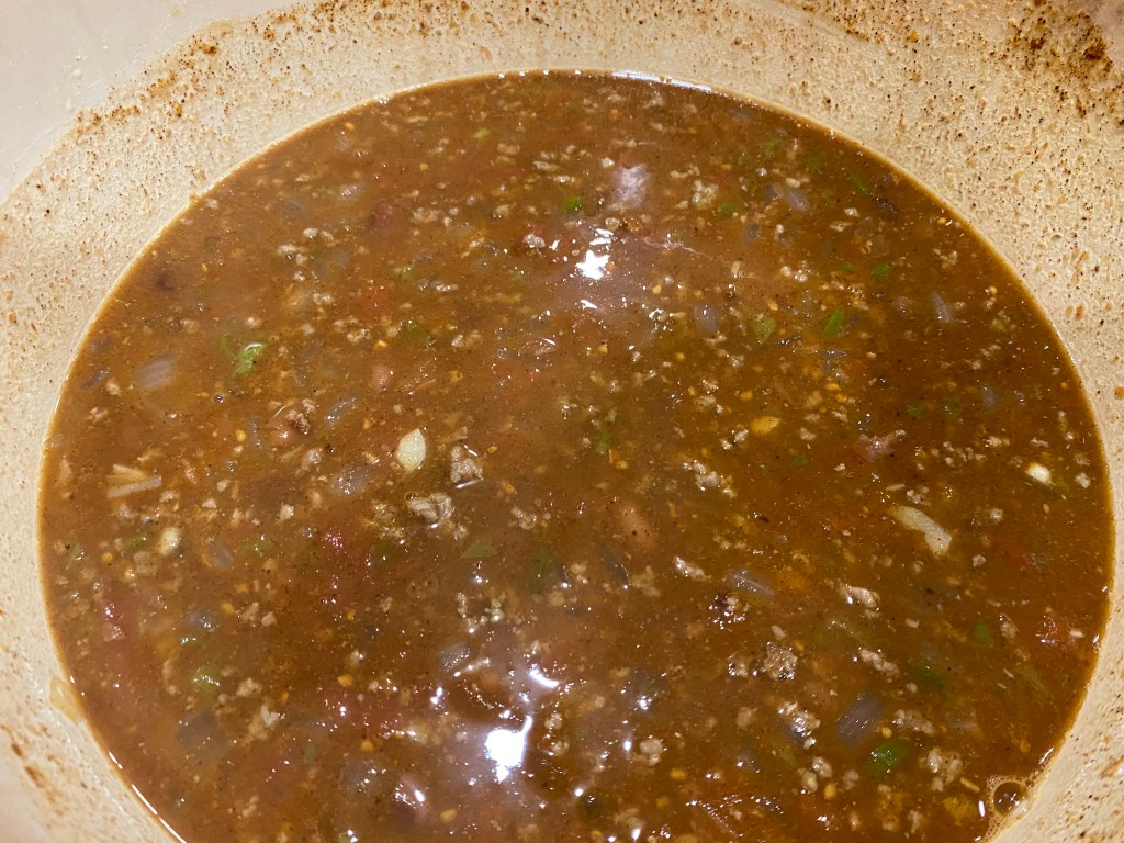 Note: This recipe can be made using the normal chili packet or chili powder but my dad just likes to use this can of chili mac with this recipe as he says it tastes better.