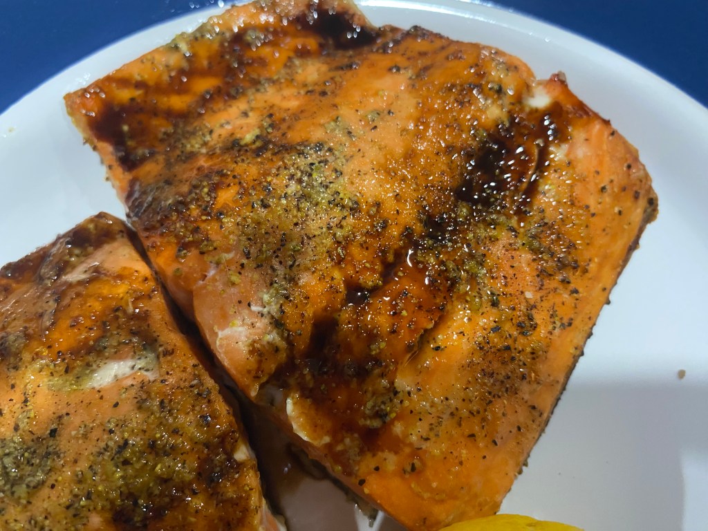My family loves salmon that has lemon pepper seasoning on it. Sometimes I make the lemon pepper seasoning homemade and sometimes when I am short on time, I just use a good quality premade one from the store. I cooked this salmon in an air-fryer, but you can certainly bake it also. I will give the directions below for both ways. You will need the following ingredients: