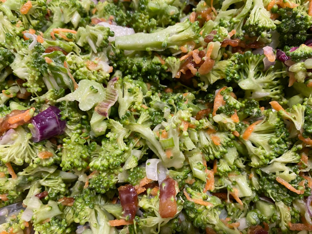 Add the broccoli, bacon, onions, and carrots and stir this together with the dressing. Chill, covered in the refrigerator. Enjoy!