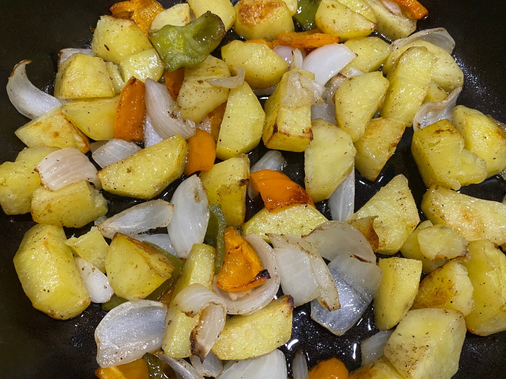 One of my family’s favorite ways to eat potatoes is when I put them in a large iron skillet and add some onions and bell peppers and roast them in the oven. They are so simple and easy to make, and they roast in the oven while the meat is cooking and most of the time it is steak, chicken, fish or pork chops. You will need the following ingredients: